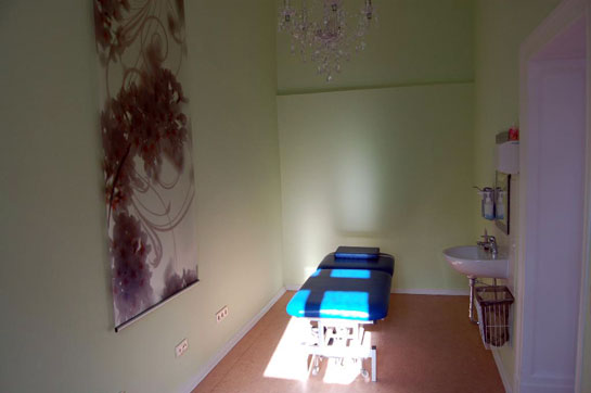 Therapieraum - Der Therapieraum wird genutzt für physiotherapeutische und ergo-therapeutische Behandlungen. Des Weiteren können hier Fußpflege und Beauty-Anwendungen stattfinden.